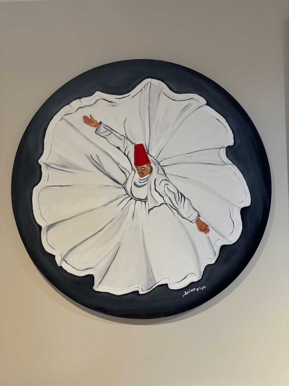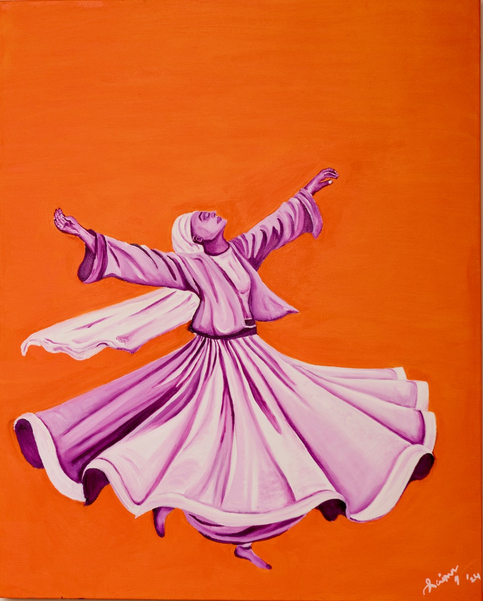 “As a Sufi artist who has been on the mystic path since childhood, I draw inspiration from the teachings of Maulana Rumi and the sacred practice of the whirling dervish. Hailing from Lahore, Pakistan, a city steeped in history and mysticism, I am deeply rooted in the rich traditions of Sufism and the pursuit of spiritual enlightenment.