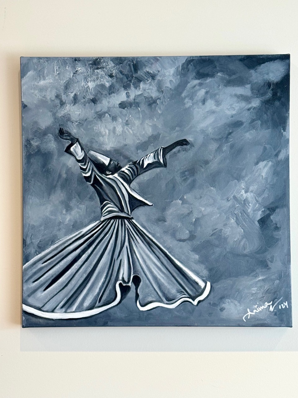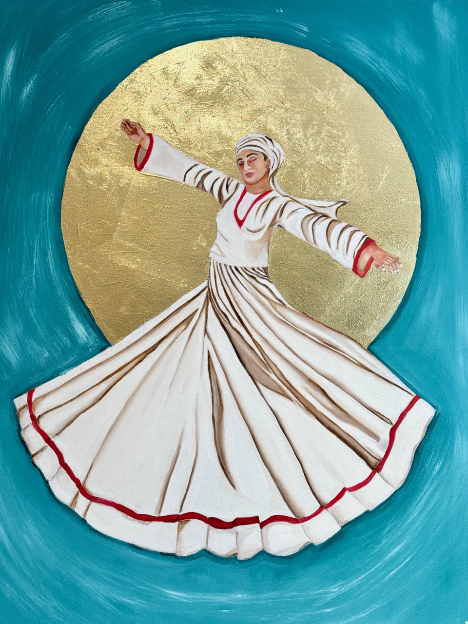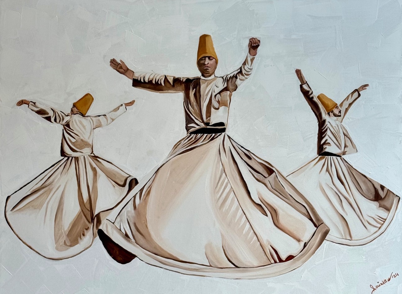 Through my art, I seek to express the inner workings of the soul, capturing the essence of the whirling dervish’s dance as a metaphor for the eternal quest for divine union. Each brushstroke is imbued with intention and prayer, are flection of my own spiritual journey and longing for deeper connection with the divine.