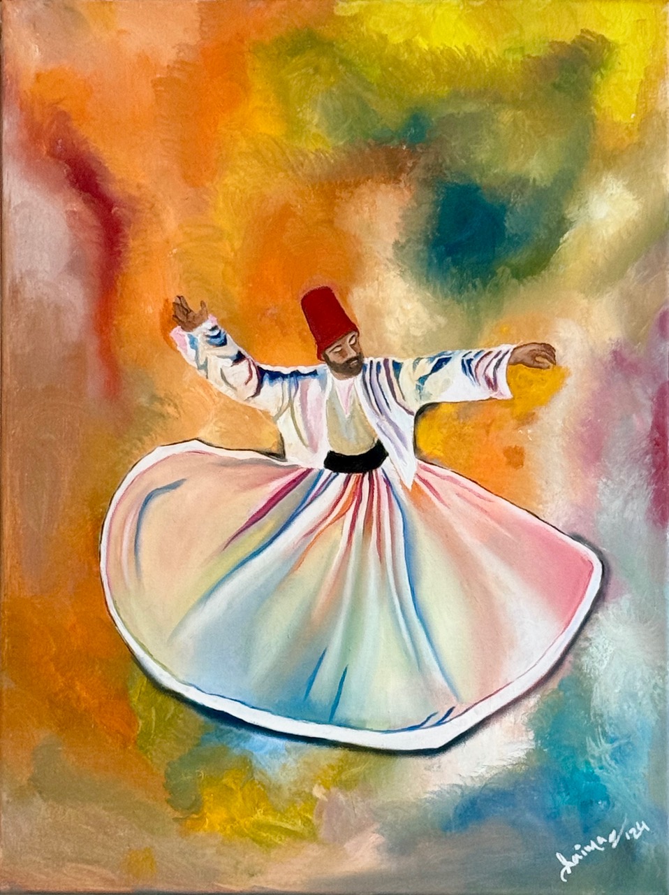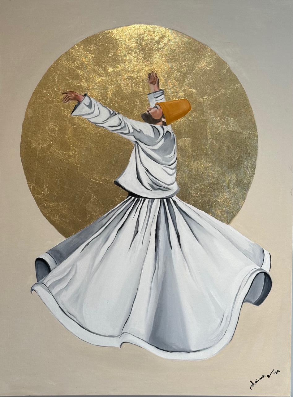 Through my art, I seek to express the inner workings of the soul, capturing the essence of the whirling dervish’s dance as a metaphor for the eternal quest for divine union. Each brushstroke is imbued with intention and prayer, are flection of my own spiritual journey and longing for deeper connection with the divine.
