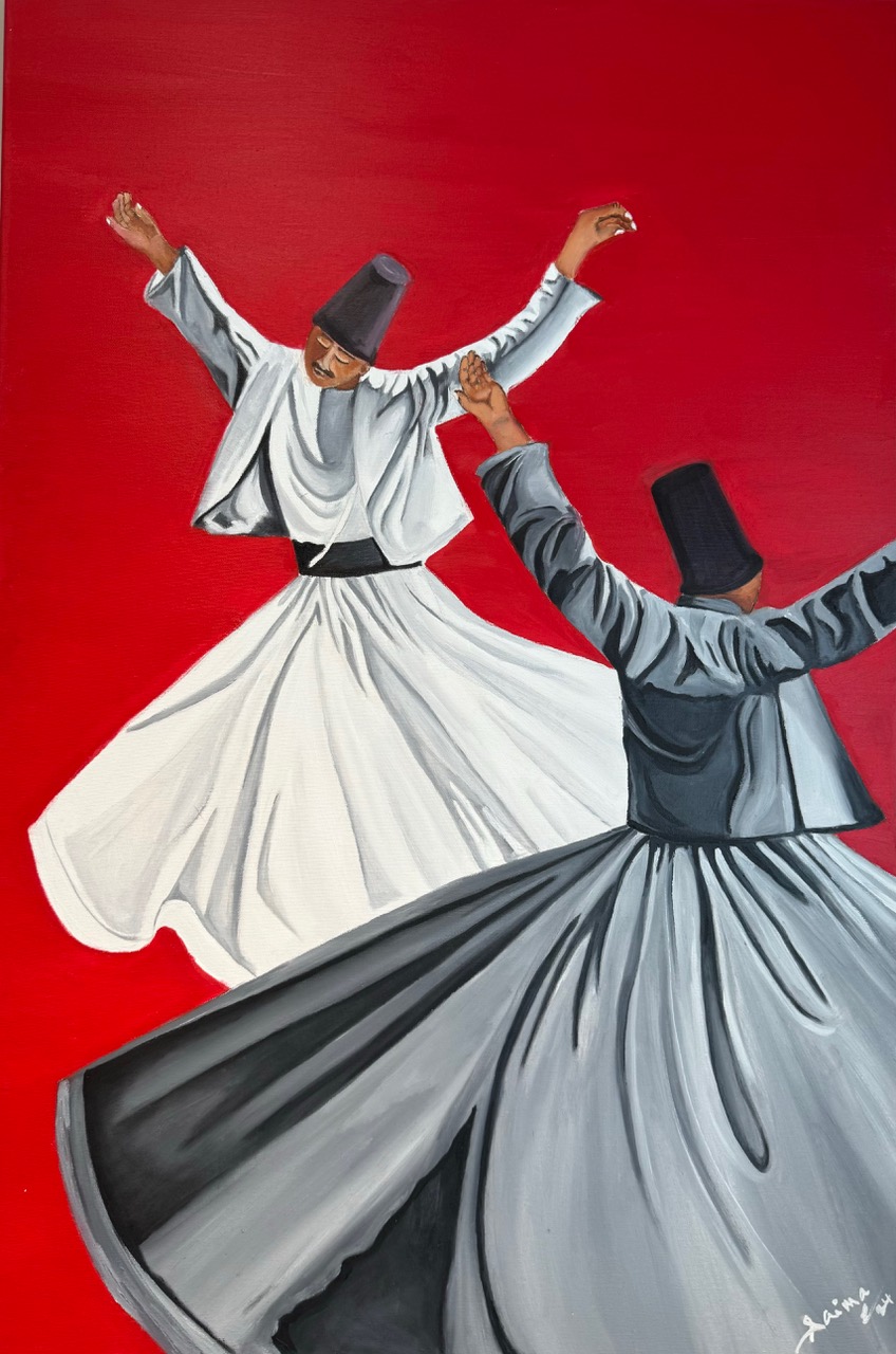 “As a Sufi artist who has been on the mystic path since childhood, I draw inspiration from the teachings of Maulana Rumi and the sacred practice of the whirling dervish. Hailing from Lahore, Pakistan, a city steeped in history and mysticism, I am deeply rooted in the rich traditions of Sufism and the pursuit of spiritual enlightenment.
